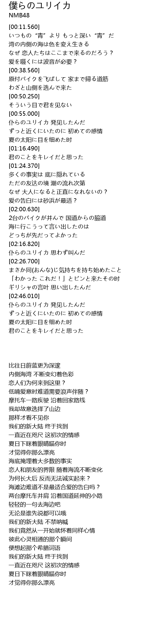 | [02:21.510] | 仆らのユリイカ 思わず叫んだ |