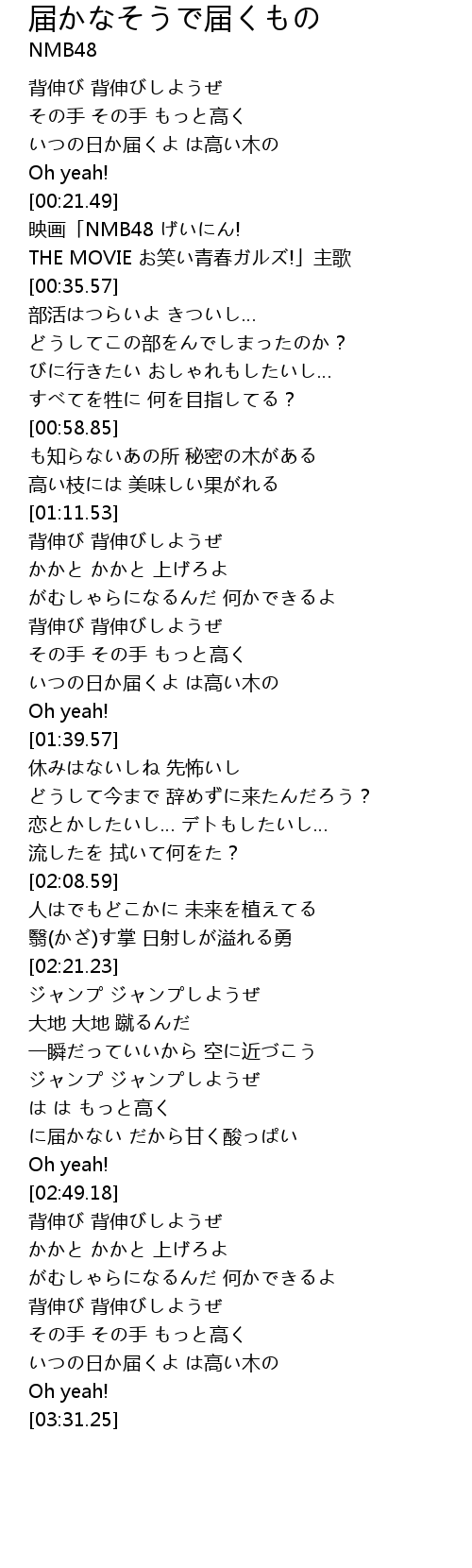 | [03:20.78] | いつの日か届くよ は高い木の |