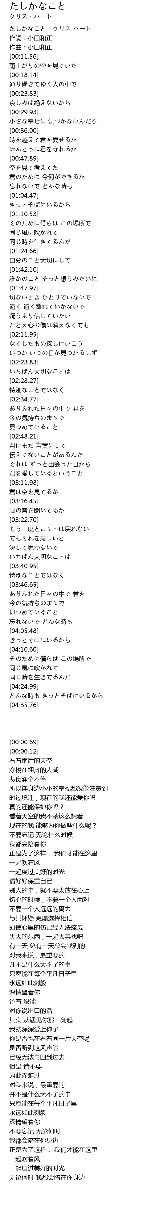 | [00:00.69] | たしかなこと - クリス ハート |