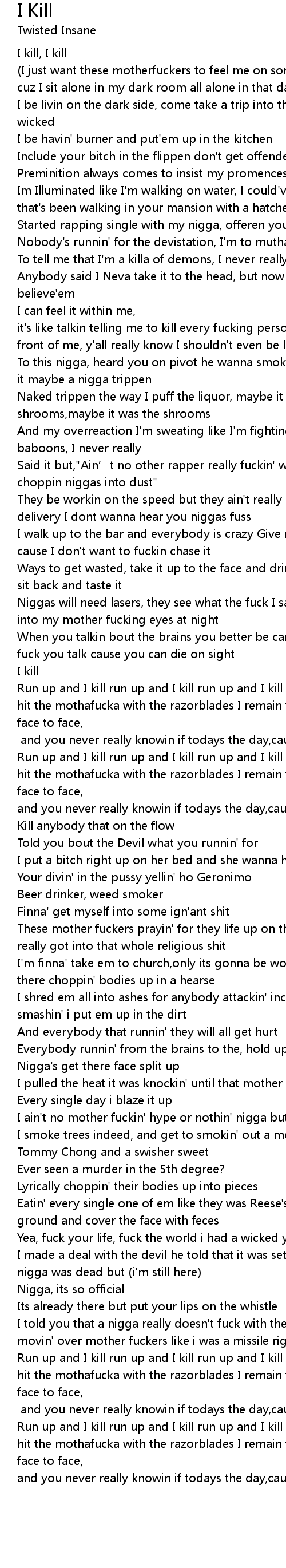 | [03:01.32] | Run up and I kill run up and I kill run up and I kill nigga |