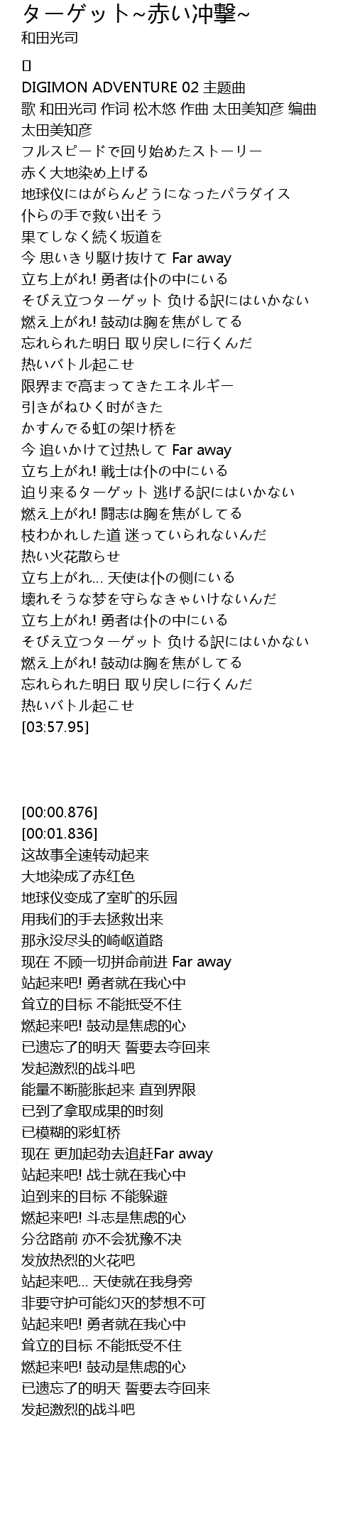| [00:00.876] | DIGIMON ADVENTURE 02 主题曲 |