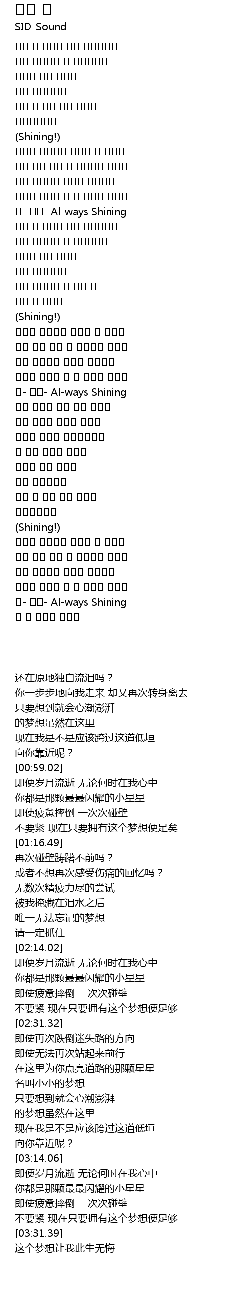 | [03:31.39] | 아- 아아- Al-ways Shining |