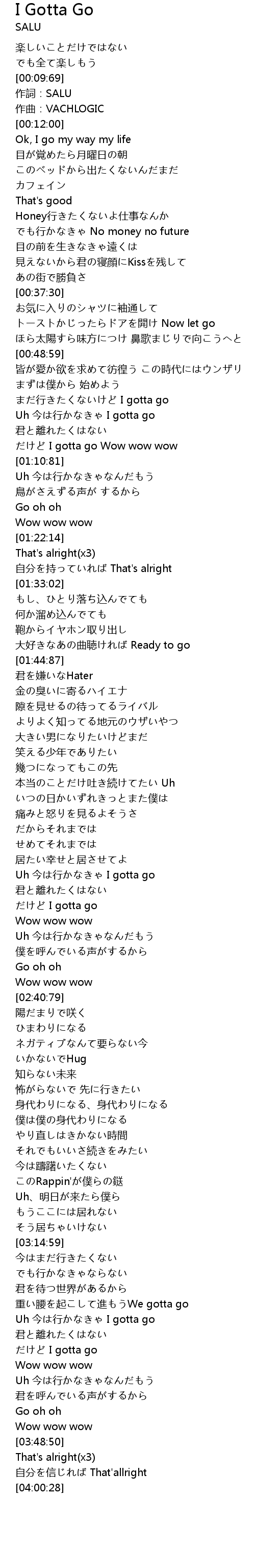| [01:07:28] | だけど I gotta go Wow wow wow |
