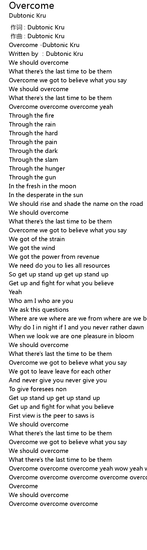 | [03:34.939] | Overcome overcome overcome overcome overcome overcome |