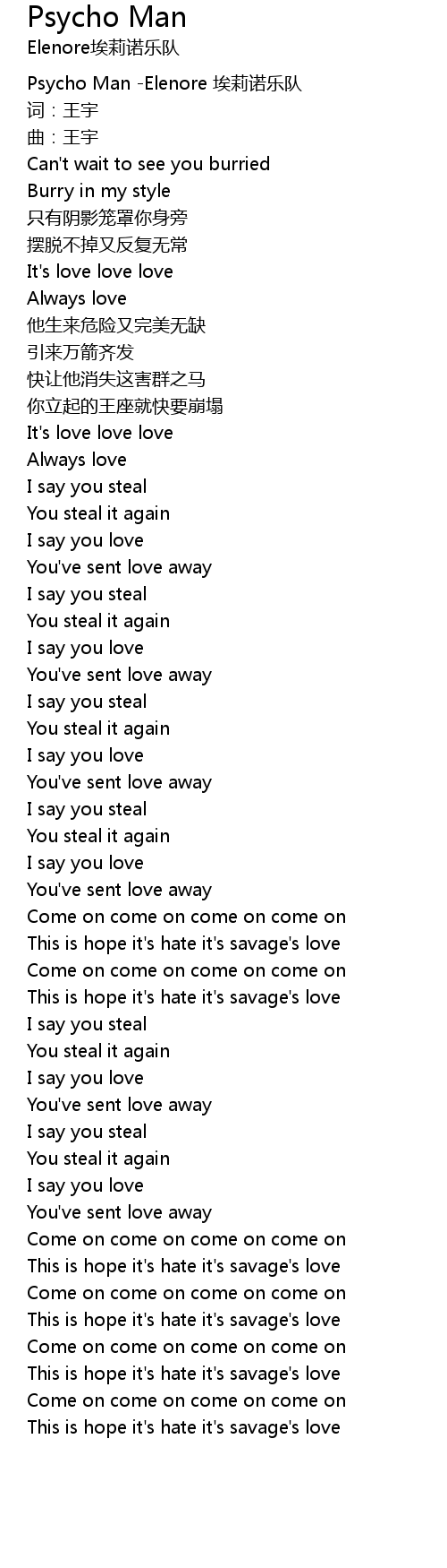 | [00:00.00] | Psycho Man -Elenore 埃莉诺乐队 |