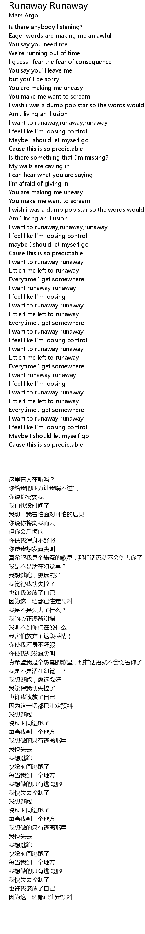 I want to runaway,runaway,runaway |