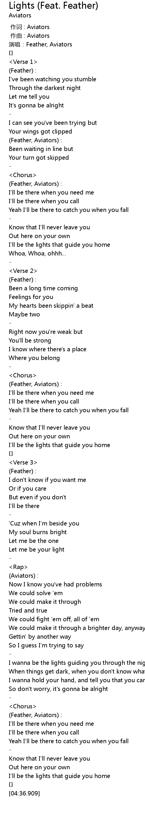 | [00:05.768] | yǎn chàng: Feather, Aviators |
