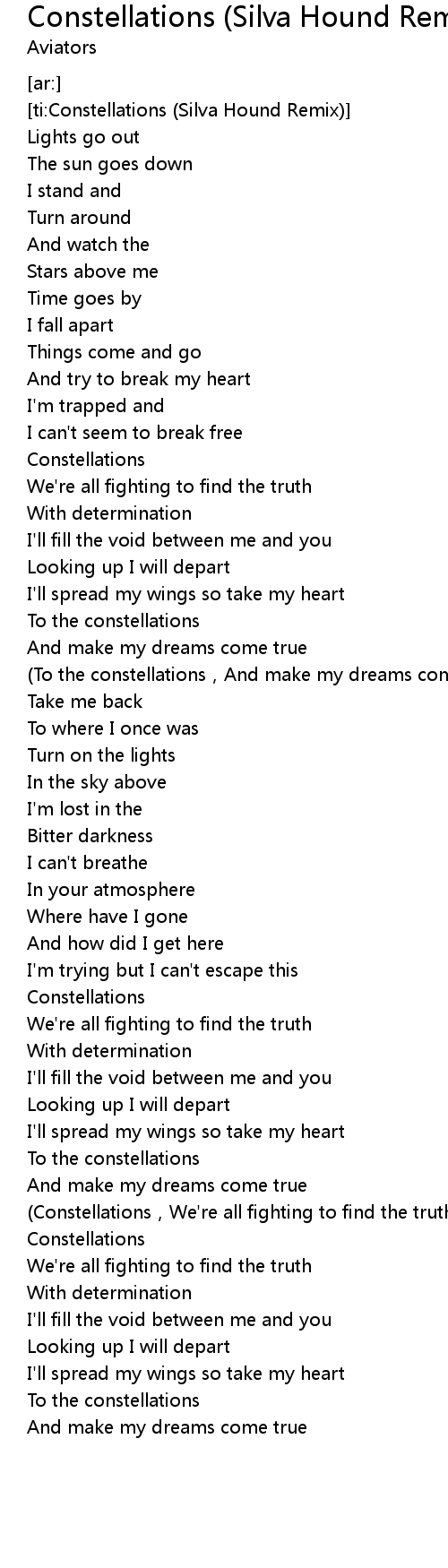 | [04:19.27] | Constellations, We' re all fighting to find the truth |