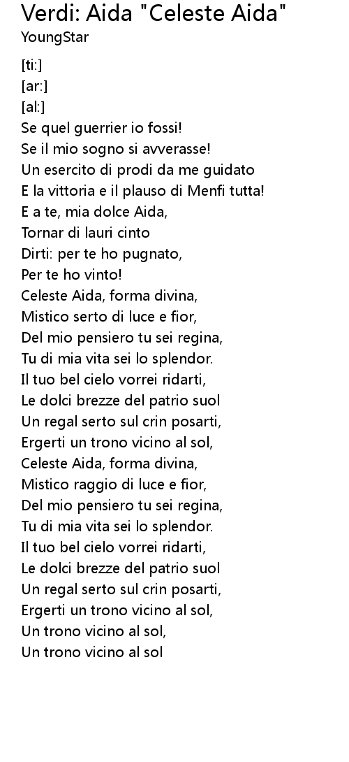 Celeste Aida, forma divina, |