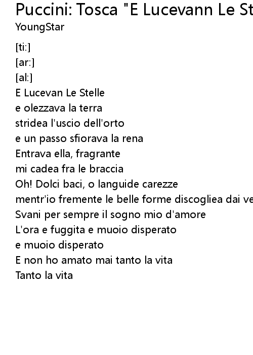 Puccini: Tosca "E Lucevann Le Stelle" Lyrics