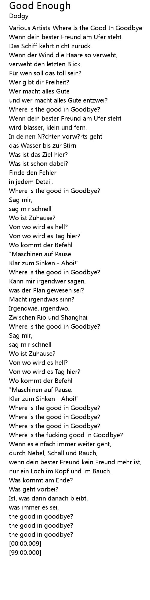 | [03:03.46] | Where is the fucking good in Goodbye? |