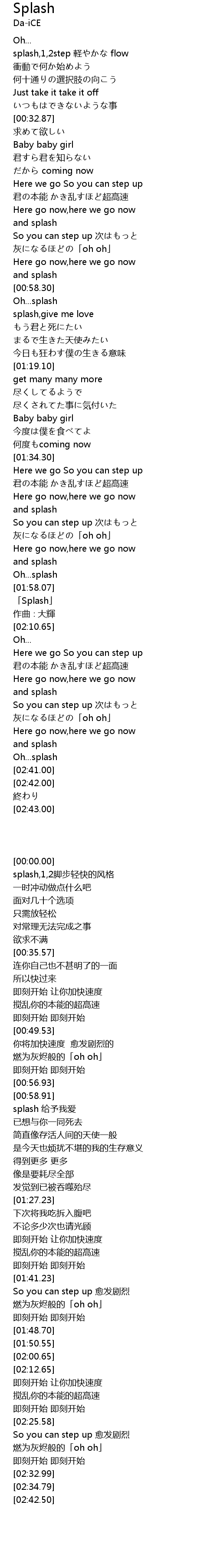 | [00:13.92] | splash, 1, 2step zhì flow |