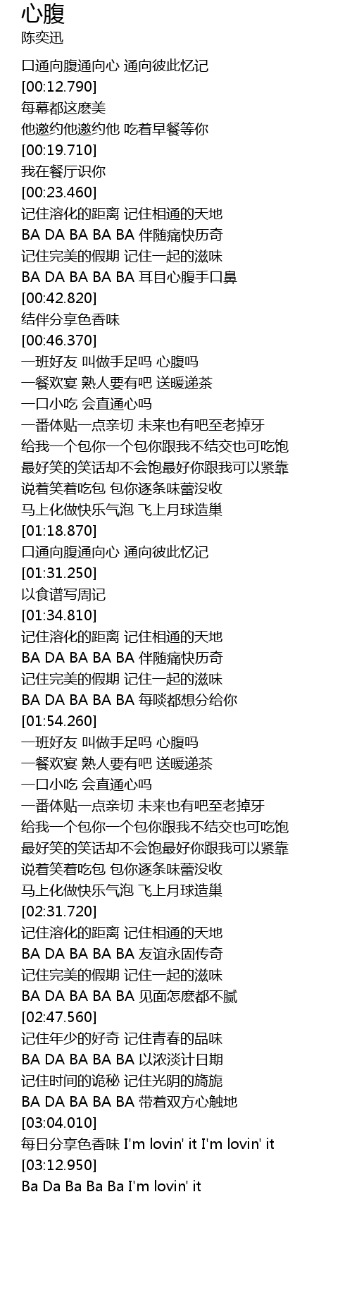 | [03:14.640] | Ba Da Ba Ba Ba I' m lovin' it |