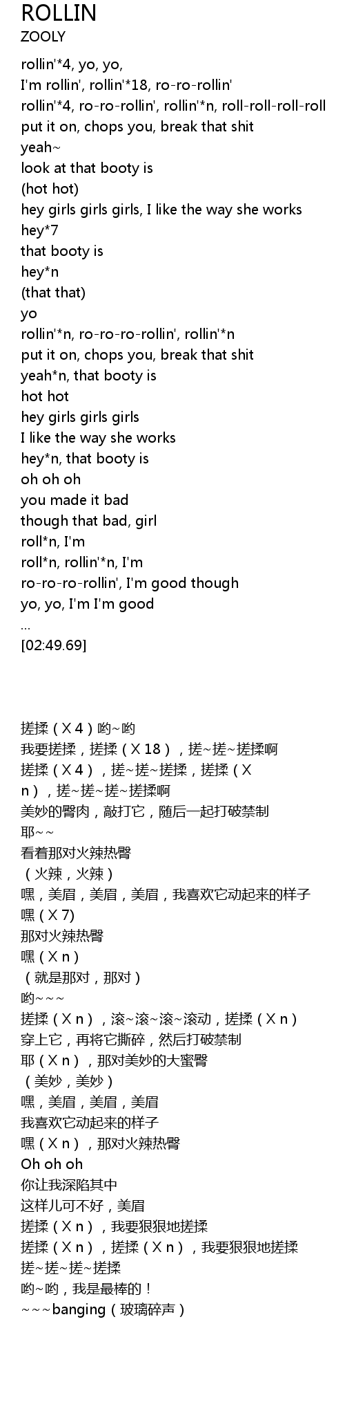 | [00:19.17] | I'm rollin', rollin'*18, ro-ro-rollin' |
