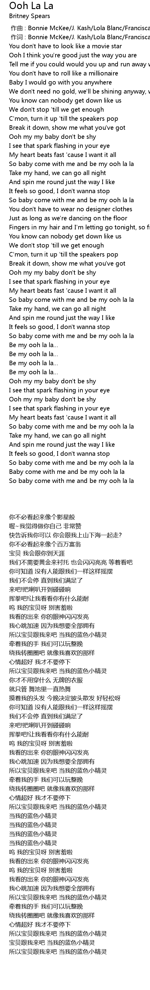 | [03:54.500] | Baby come with me and be my ooh la la |