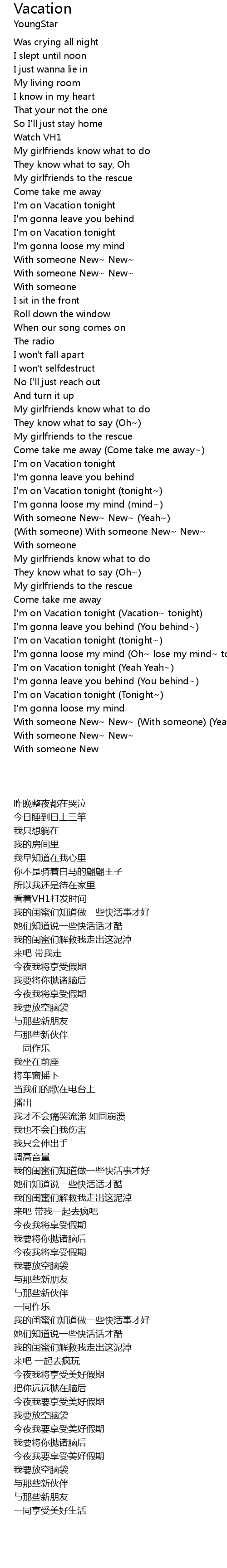 | [02:59.740] | I'm on Vacation tonight (Yeah Yeah~) |
