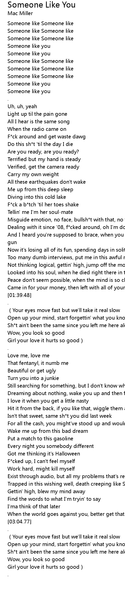 | [03:20.38] | Sh*t ain't been the same since you left me here alone |