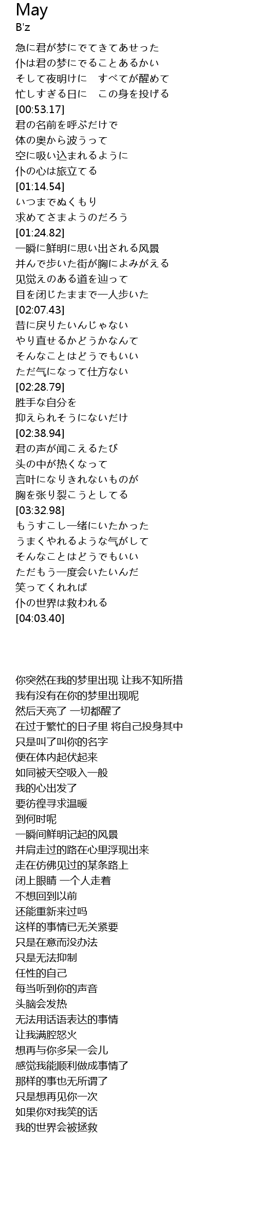 | [03:33.55] | もうすこし一绪にいたかった |