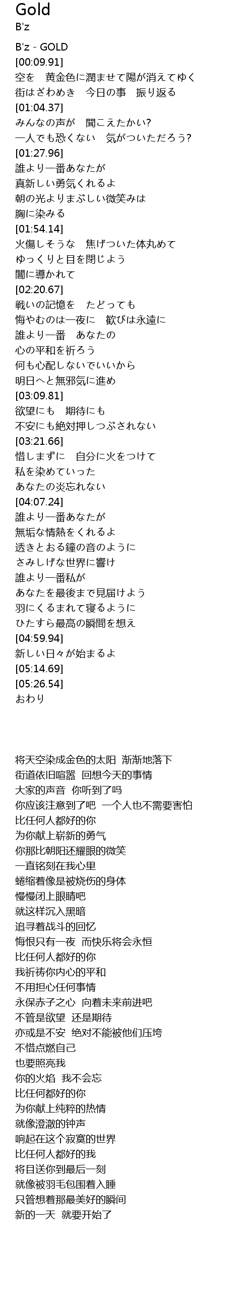 | [00:42.79] | 空を 黄金色に潤ませて陽が消えてゆく |