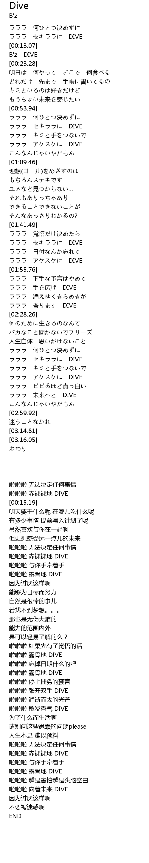 | [02:18.12] | ラララ 手を広げ DIVE |
