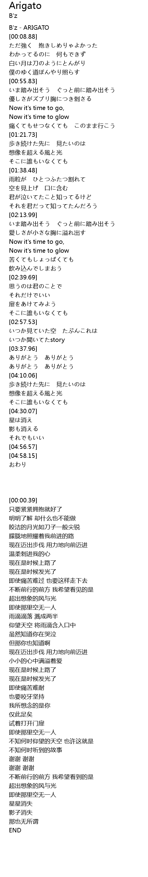 | [00:00.39] | B' z ARIGATO |
