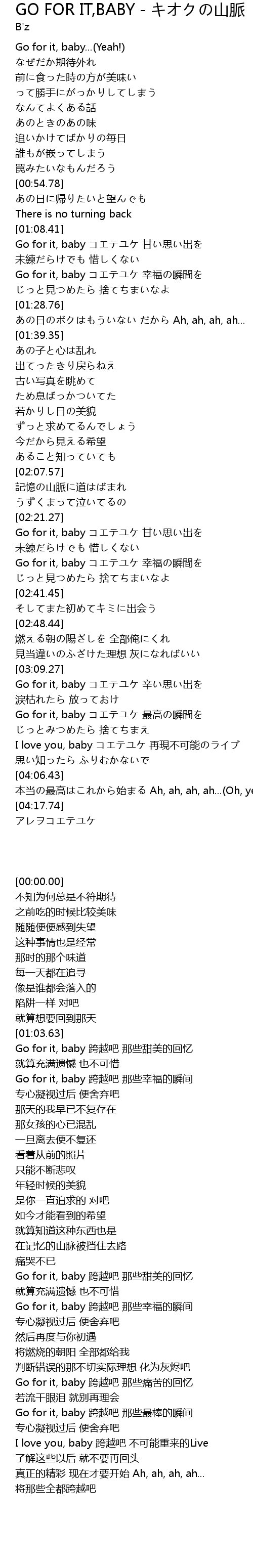 | [03:37.40] | Go for it, baby コエテユケ 辛い思い出を |
