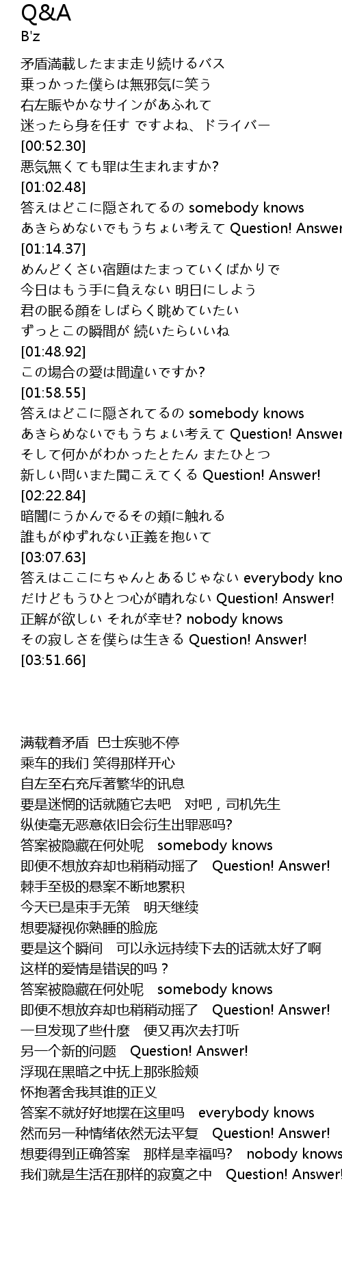 | [02:15.81] | xīn wèn wén Question! Answer! |