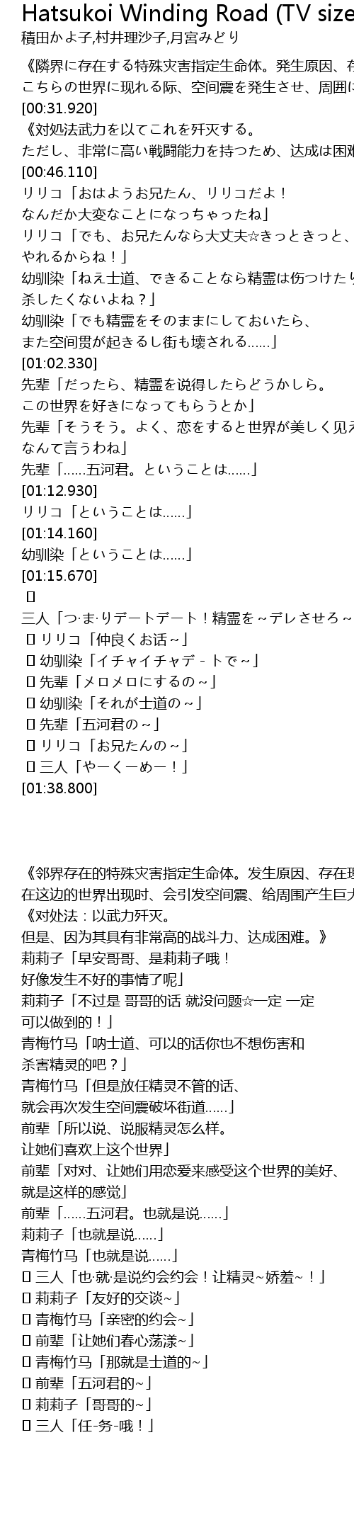 | [00:55.070] | 幼驯染「ねえ士道、できることなら精霊は伤つけたり |