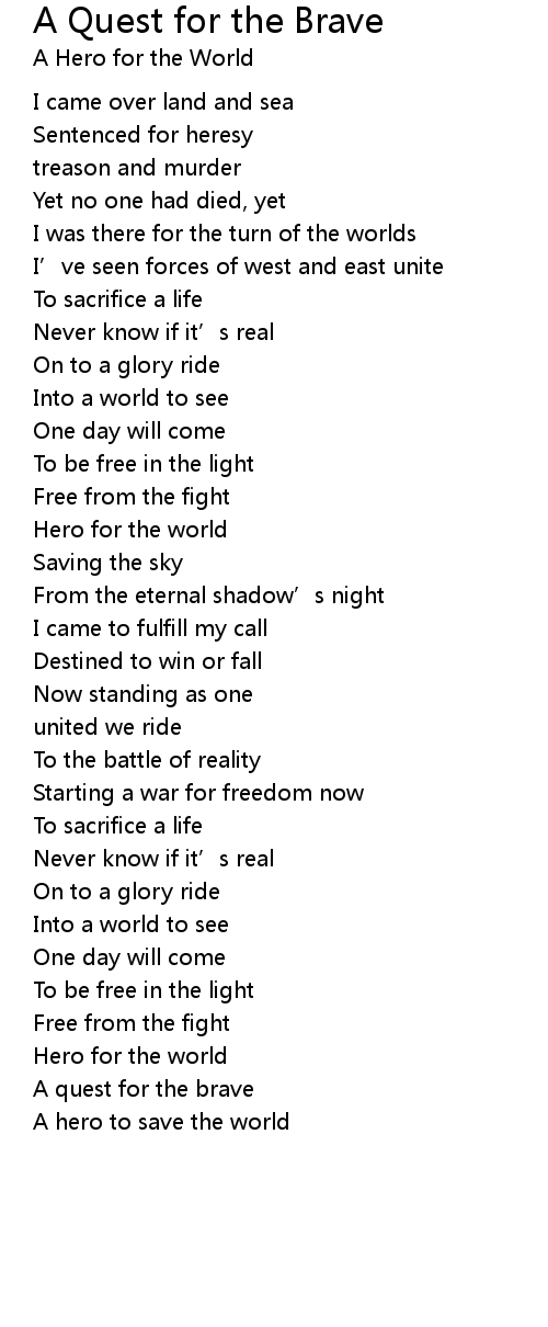 | Song | A Quest for the Brave |