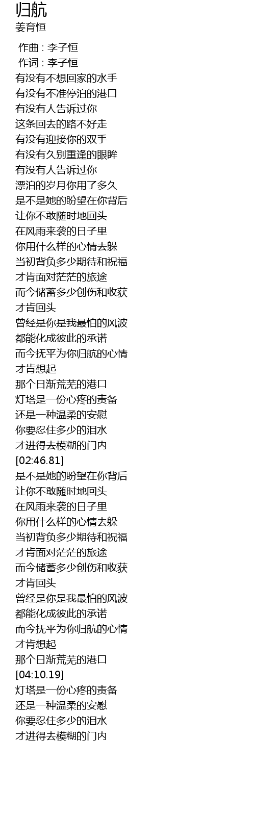 | [02:01.38] | 而今抚平为你归航的心情 |