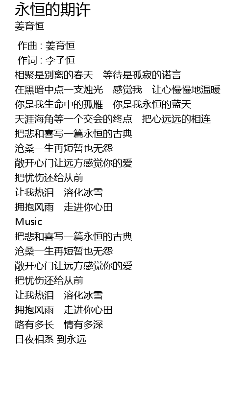 | [00:15.33] | 相聚是别离的春天 等待是孤寂的诺言 |