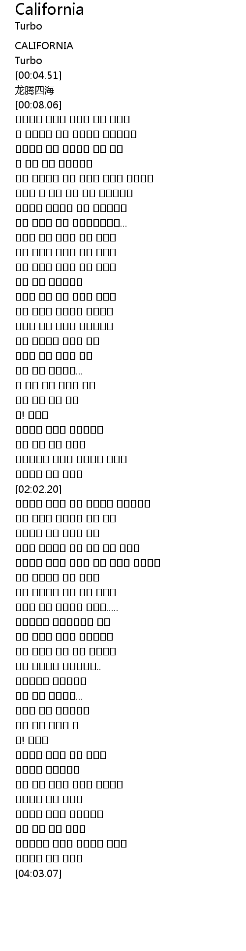 | [00:00.06] | CALIFORNIA |