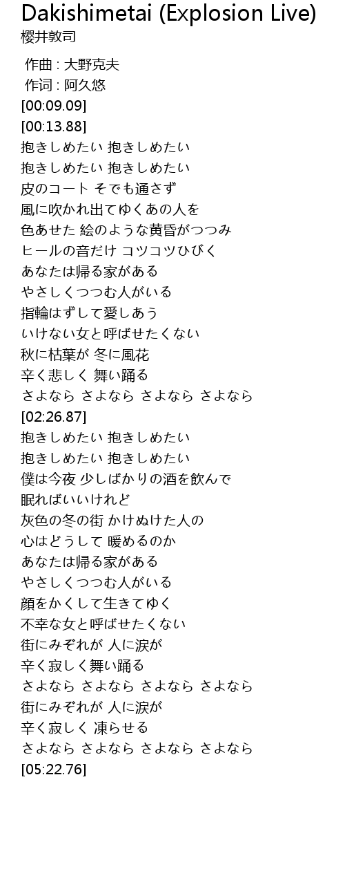 | [03:22.40] | 抱きしめたい 抱きしめたい |