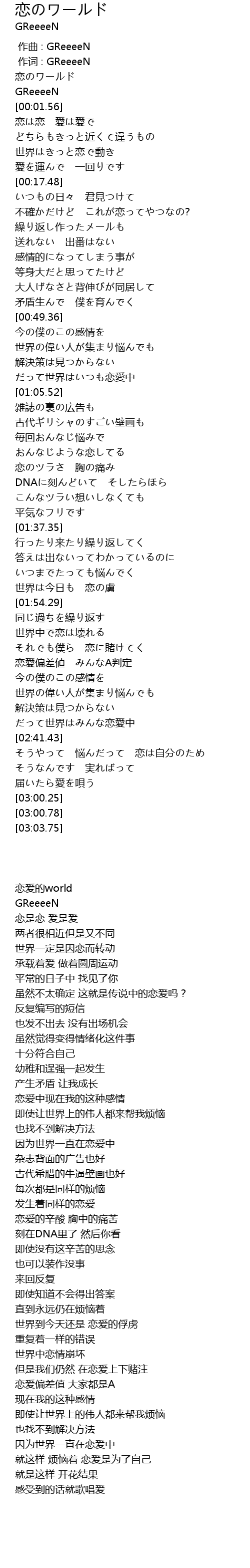 | [00:00.35] | GReeeeN |