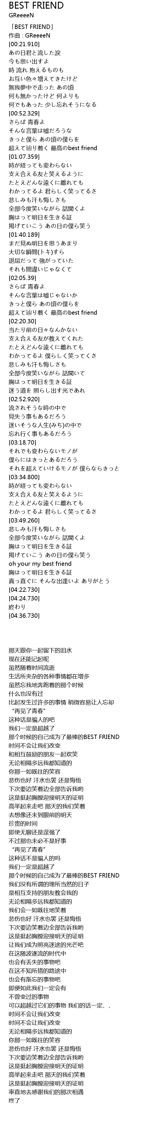 | [01:03.999] | 超えて辿り着く 最高のbest friend |