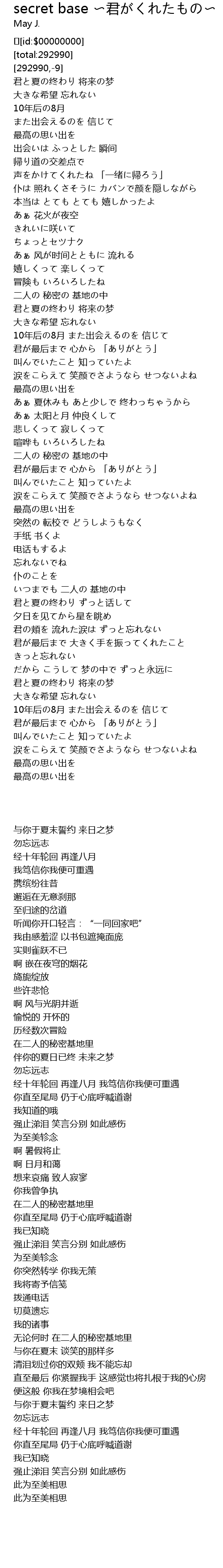 | [03:31.940] | いつまでも 二人の 基地の中 |