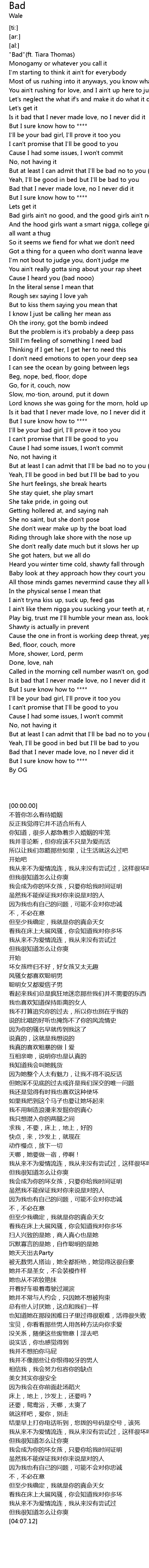 [00:00.00] "Bad"(ft. Tiara Thomas)