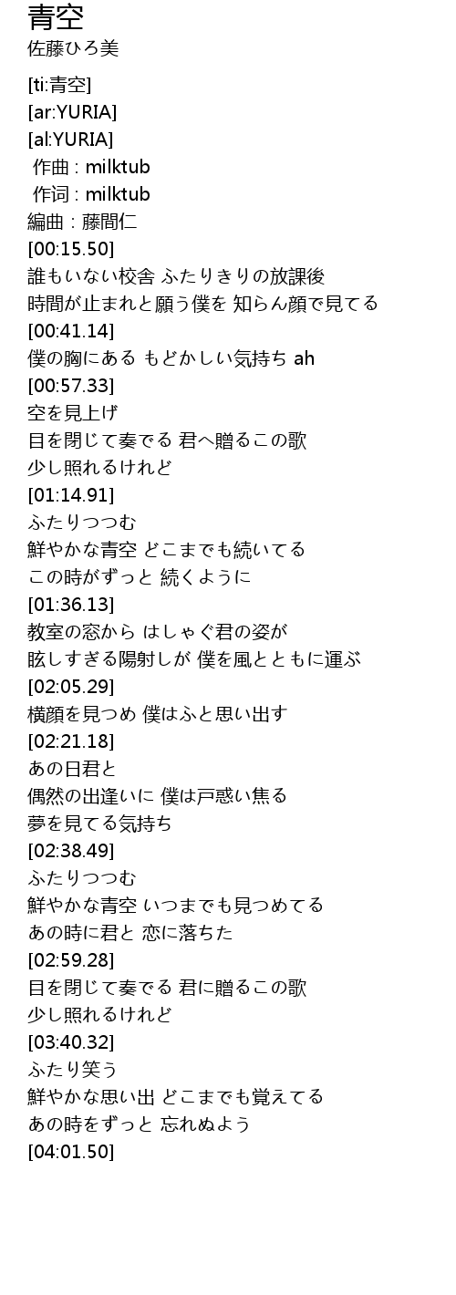 | [02:40.59] | 鮮やかな青空 いつまでも見つめてる |
