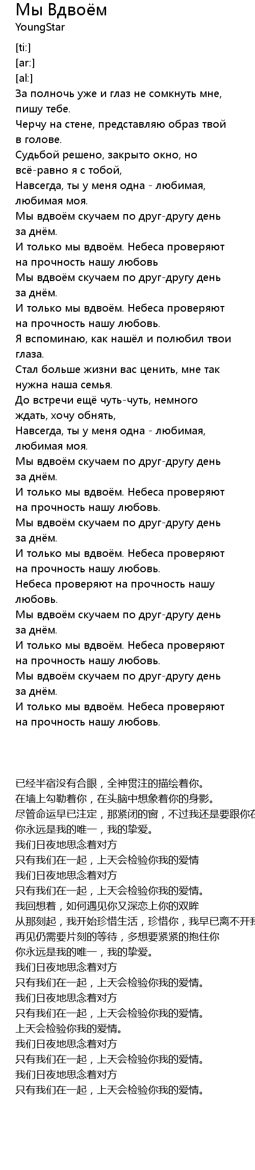 Мы Вдвоём  Lyrics