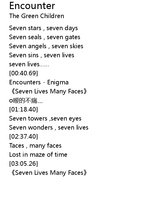 | [03:08.38] | 《Seven Lives Many Faces》 |