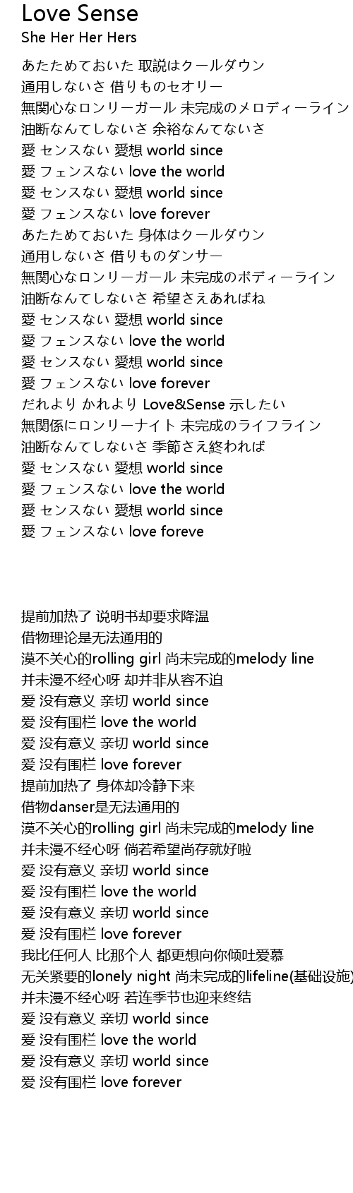 | [02:00.21] | 愛 センスない 愛想 world since |
