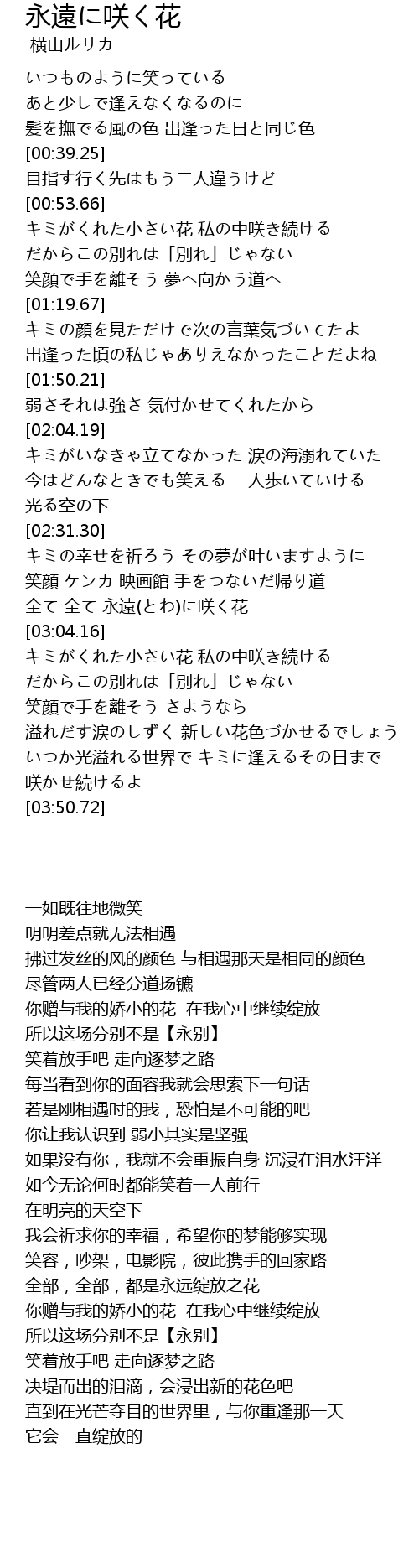 | [02:57.50] | 全て 全て 永遠(とわ)に咲く花 |