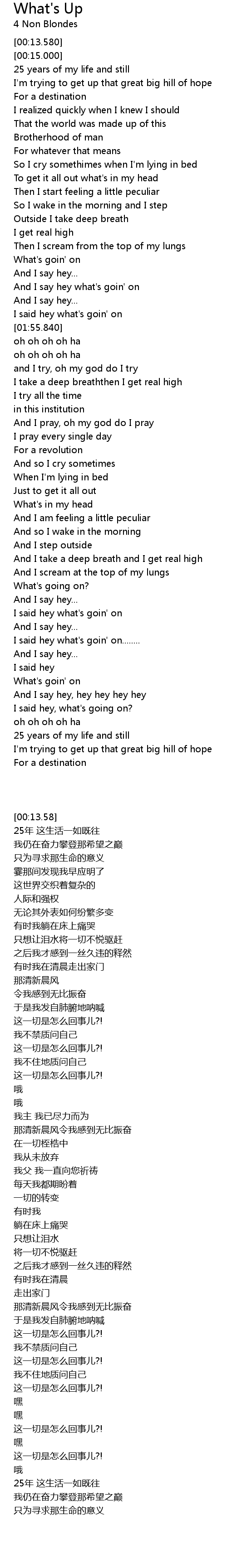 And I say hey what's goin' on |