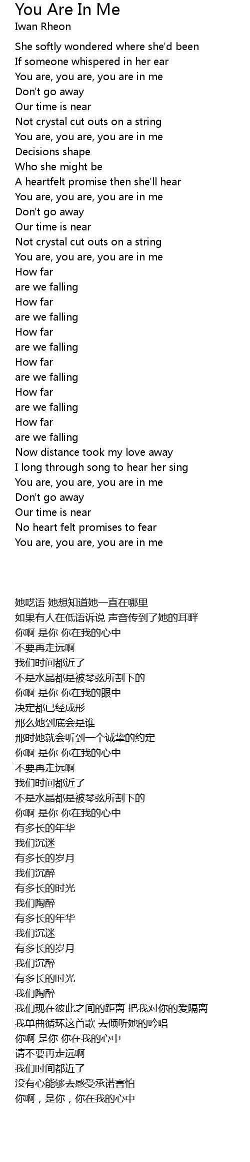 You Are In Me Lyrics