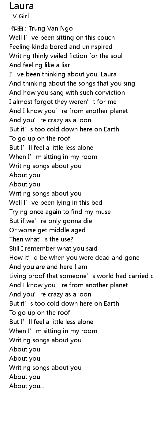 | [00:40.51] | I' ve been thinking about you, Laura |
