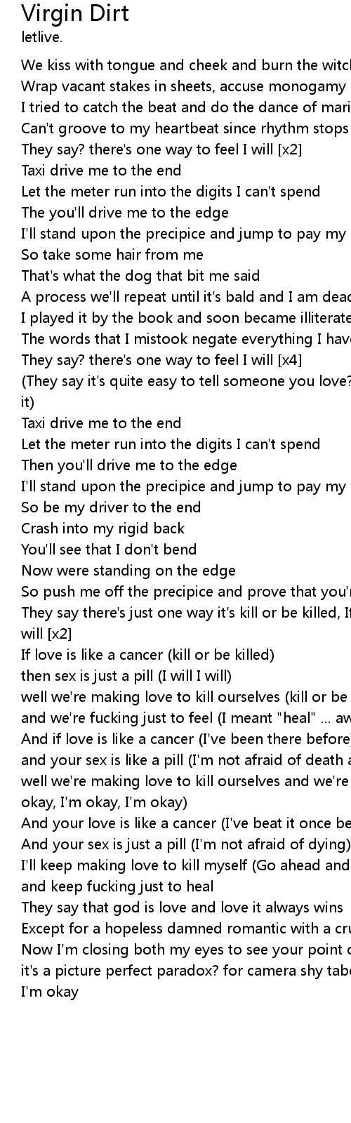 well we're making love to kill ourselves and we're fucking just to heal ?(I'm okay, I'm okay, I'm okay) |