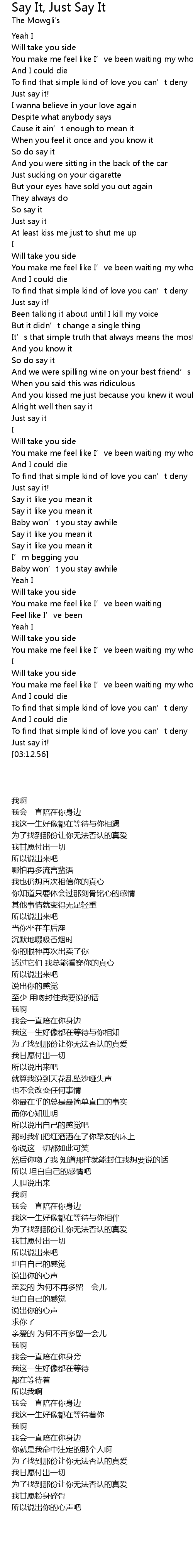 | [02:09.62] | Say it like you mean it |
