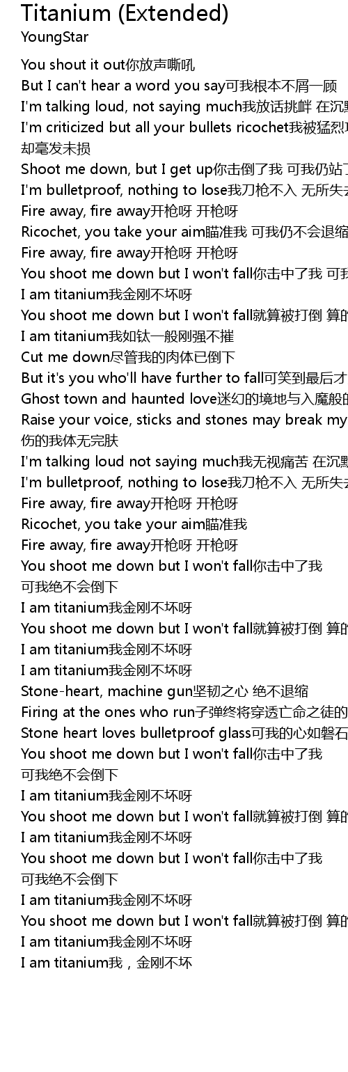 | [02:37.49] | I am titanium我金刚不坏呀 |