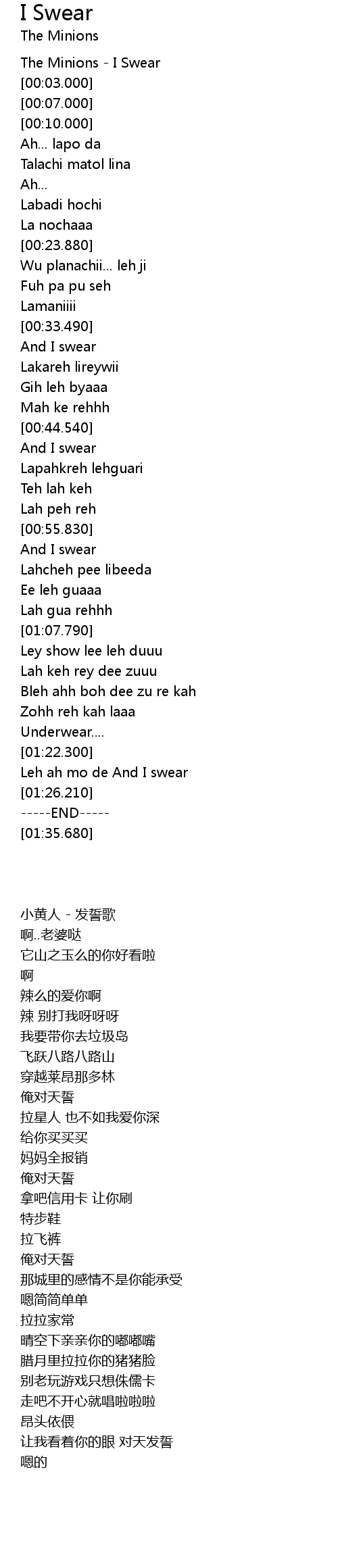 | [00:00.000] | The Minions - I Swear |