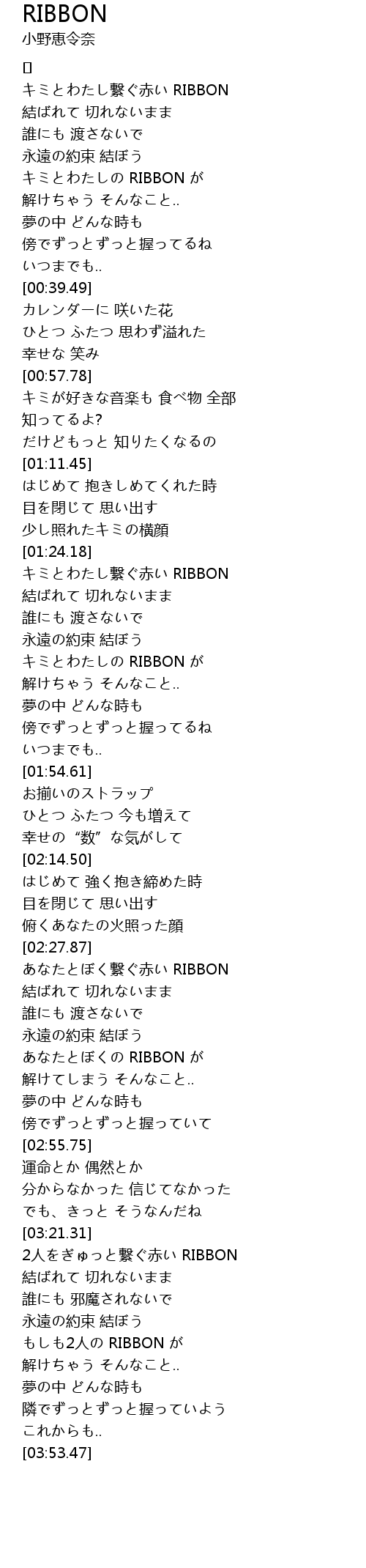 | [03:23.17] | 2人をぎゅっと繋ぐ赤い RIBBON |